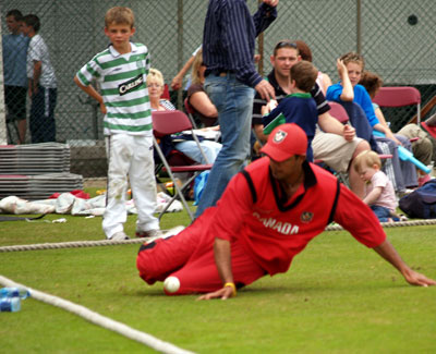Bhatti attempts to stop the ball on the boundary