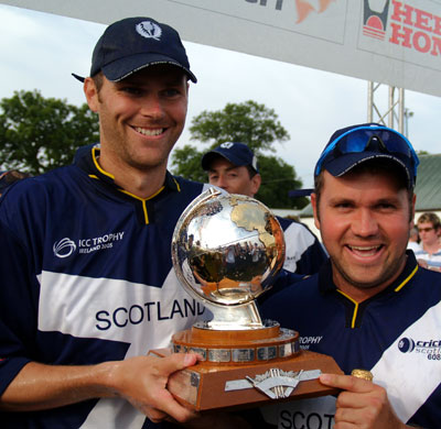 Craig Wright and Ryan Watson with the ICC Trophy